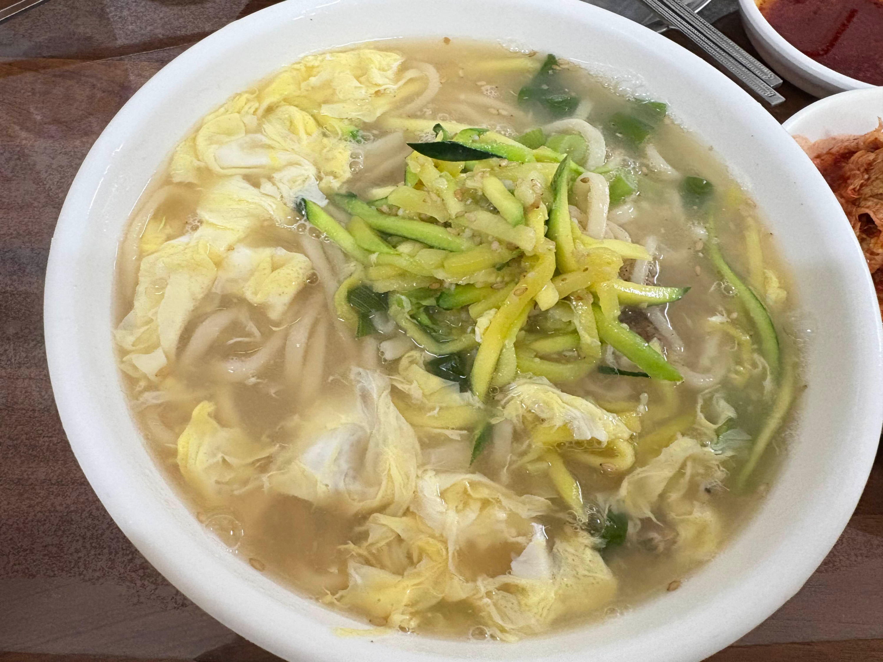계란이 풀려져있고 애호박이 채썰어져 나온다.