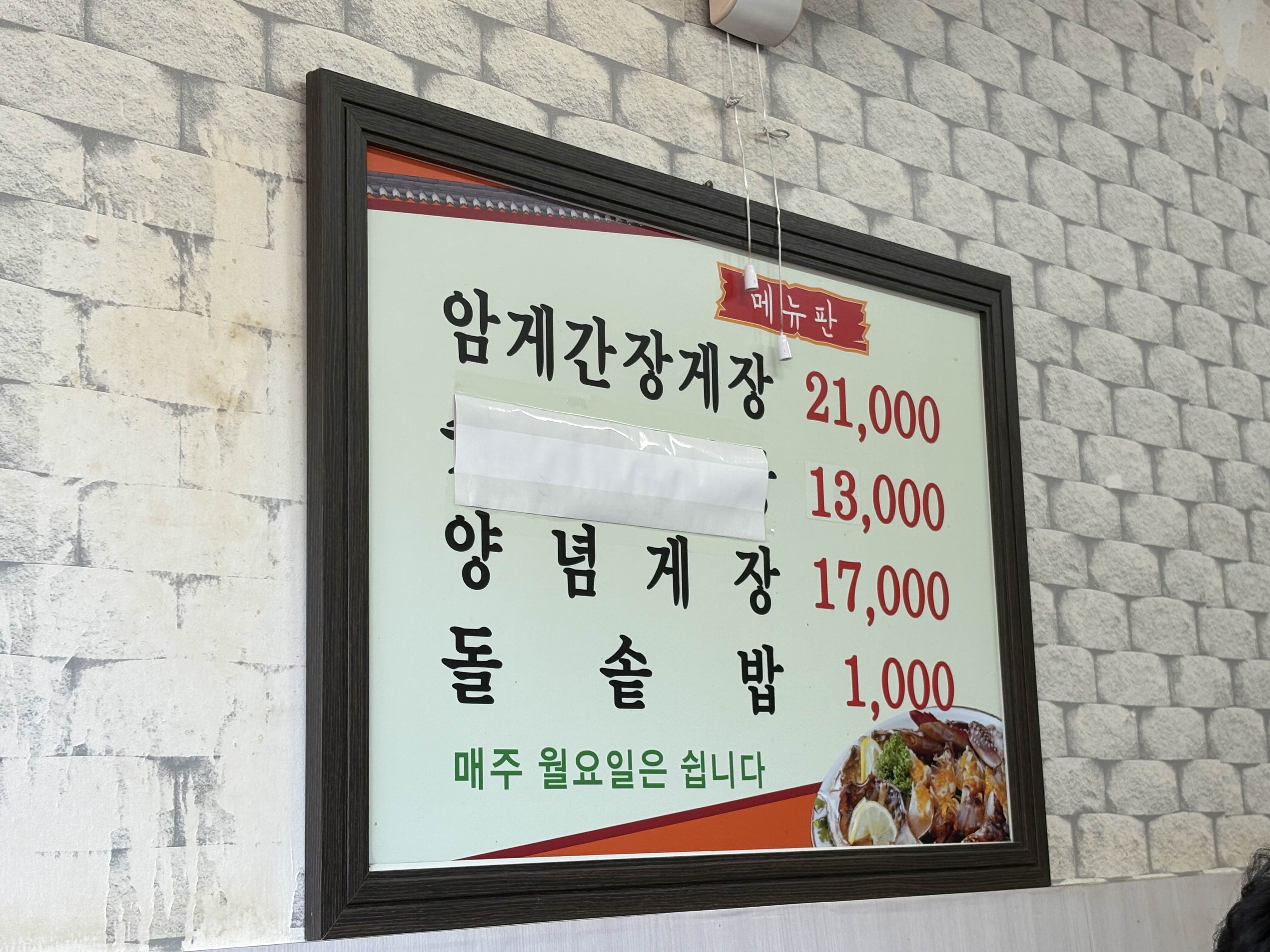 암게간장게장이 1인분 1마리에 21,000원이니,,